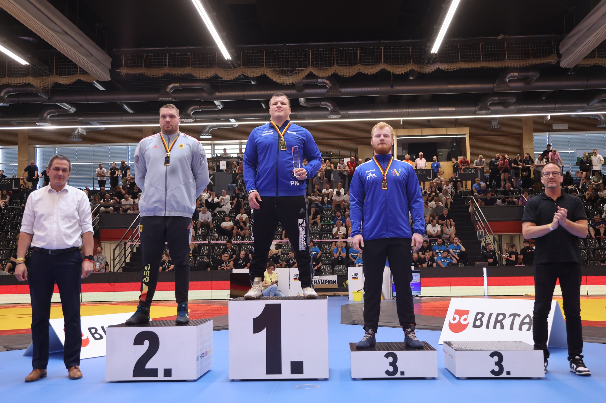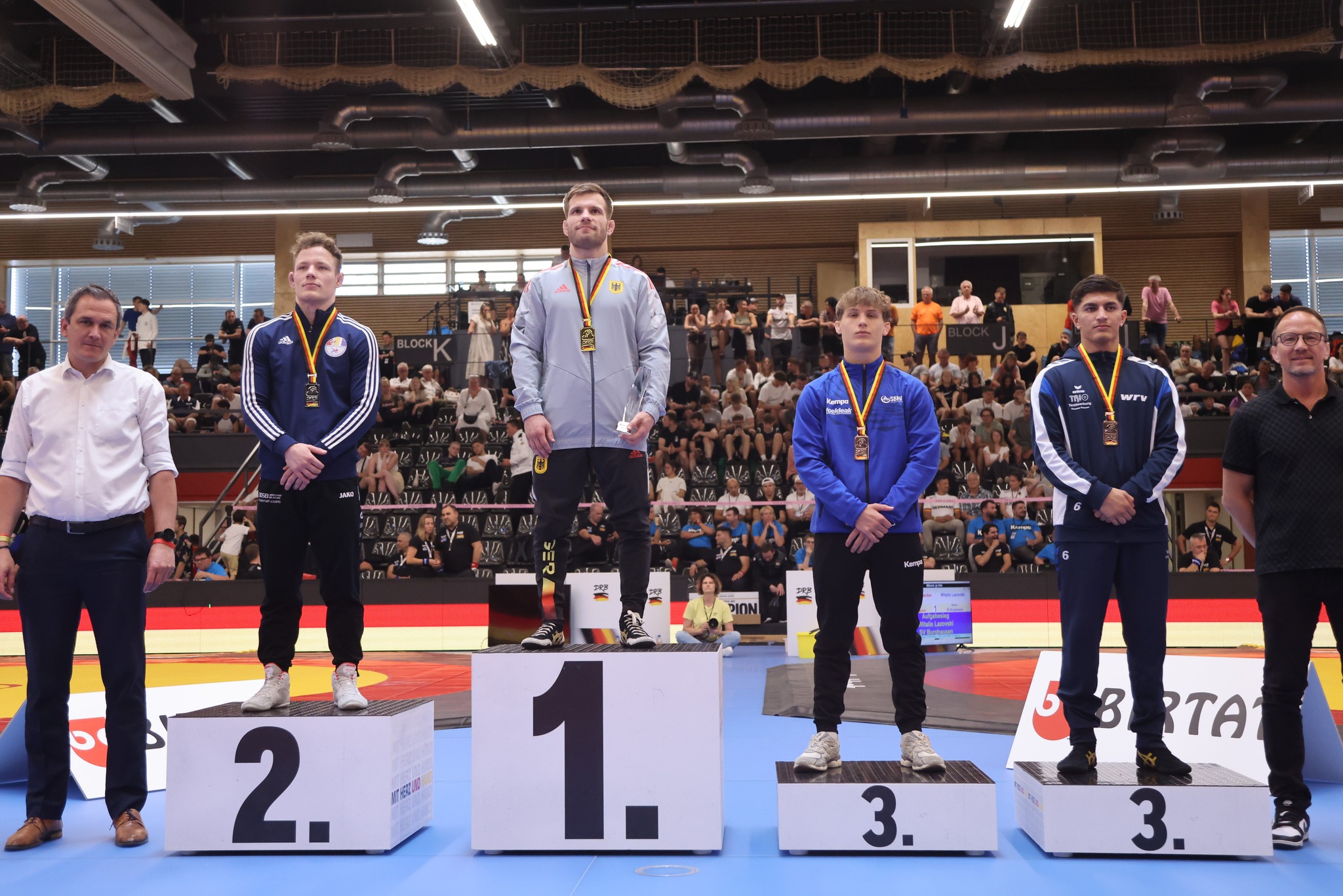 Etienne Kinsinger sicherte sich in der Gewichtsklasse bis 63 kg im griechisch-römischen Stil souverän die Goldmedaille und krönte sich damit zum Deutschen Meister.