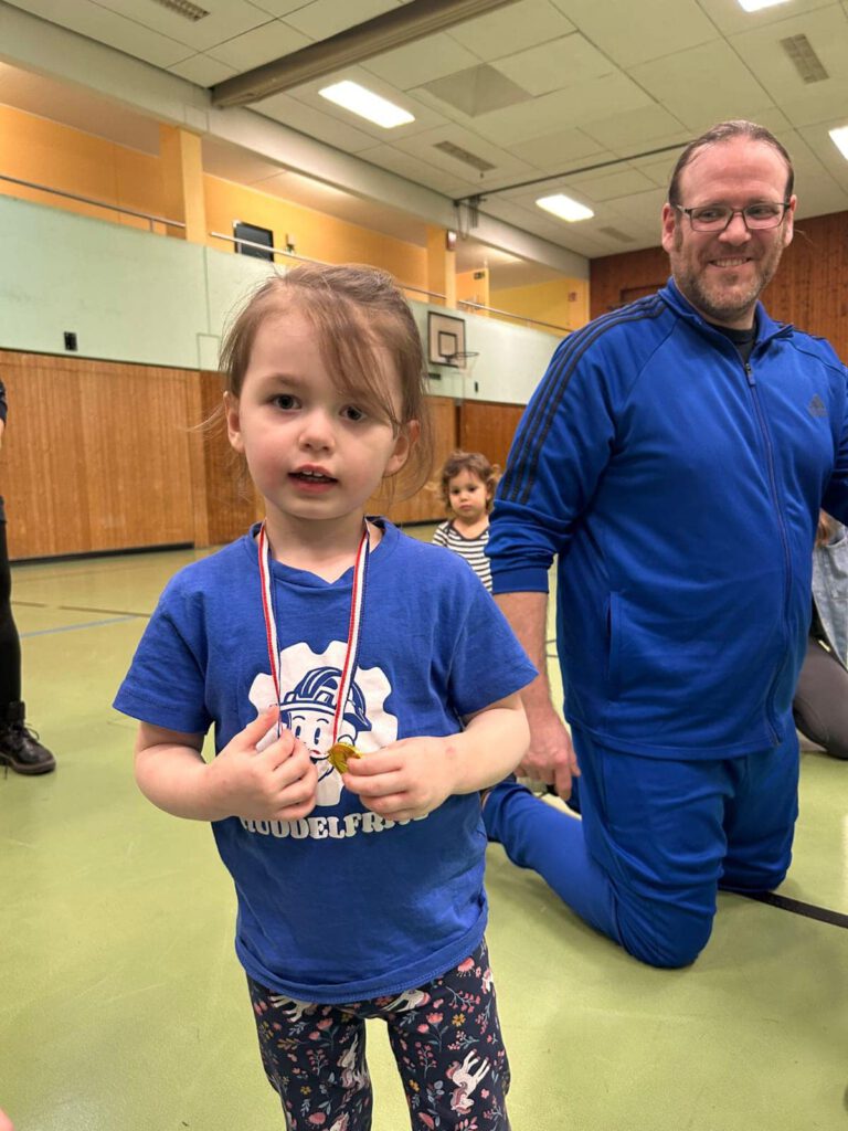 Bei unseren jüngsten Sportlern wird normalerweise die Matte nur als Spiel- und Übungsfläche benutzt. Natürlich wird auch unter Freude der Trainer nach Regeln gerauft.