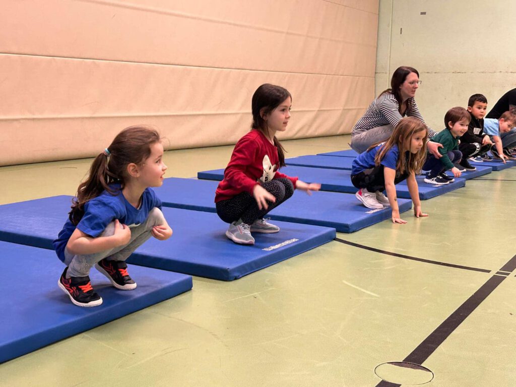 Mit Hilfe von Laufspielen, Konzentrations- , Kletter-, Koordinations- und Gleichgewichtsübungen in spielerischer Atmosphäre werden koordinative und motorische Fähigkeiten geschult.